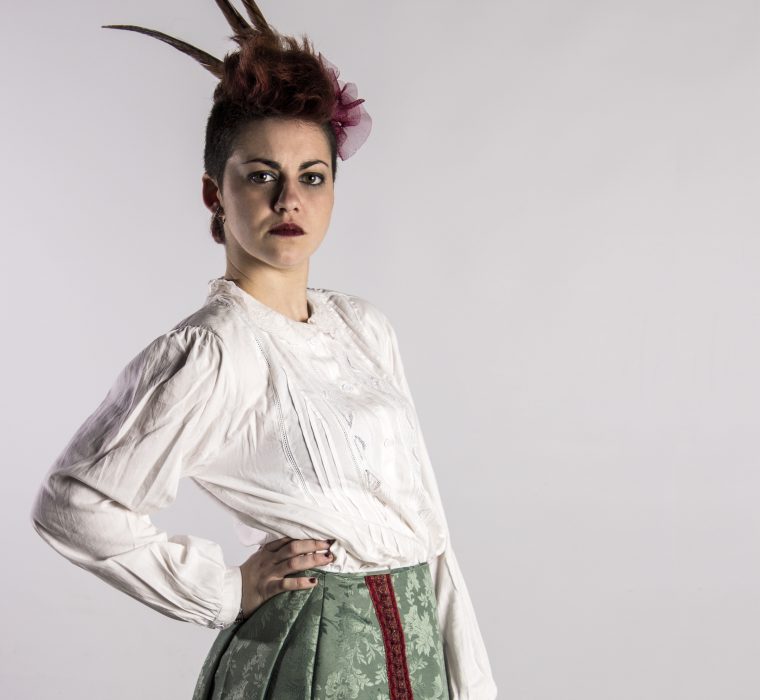 Formado por: enaguas, polisón, falda + cola, sobrefalda, chaqueta.